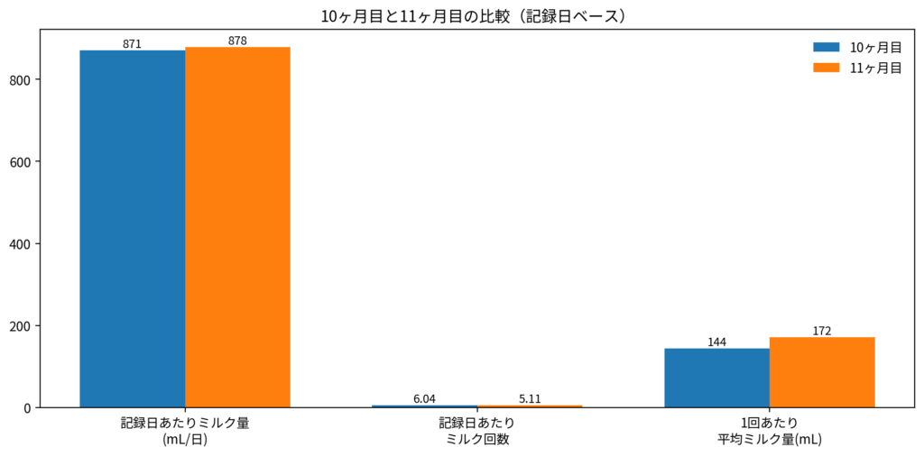 つまり、今月は「いきなりミルクが激減した」というより、保育園生活が始まって、少しずつ飲み方が組み替わっていった月 と見るほうが自然そうです。