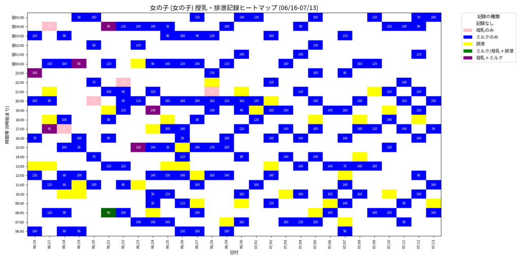 授乳・排泄の「時間帯ヒートマップ」で見えたこと