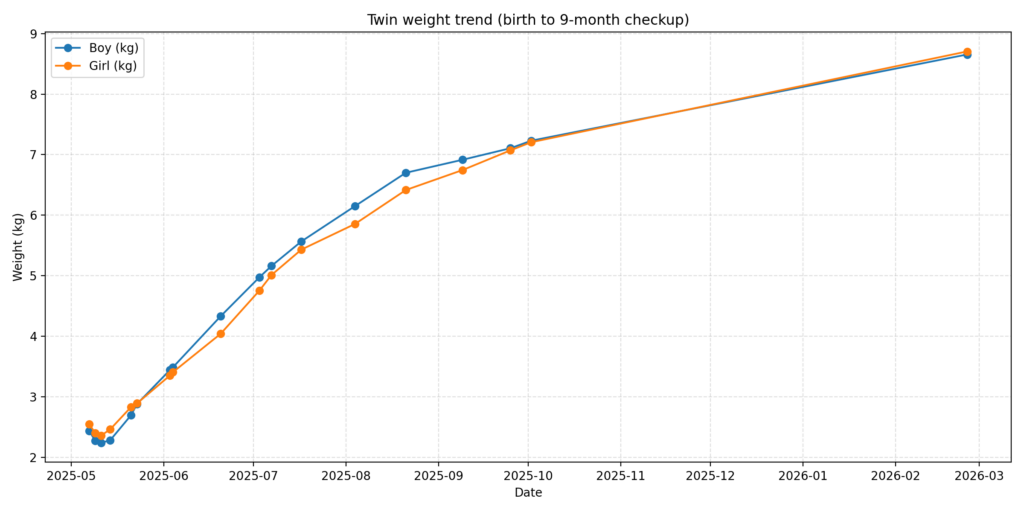 今回は 2026年2月25日 の 生後9ヶ月検診 に行ってきたので、前回の「出生〜4ヶ月検診までの記録」記事の続き(データ回)を書きます。