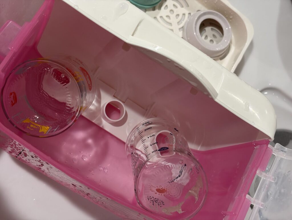- 授乳後は「軽くすすぐ」だけ(洗浄・消毒は朝まとめ)
