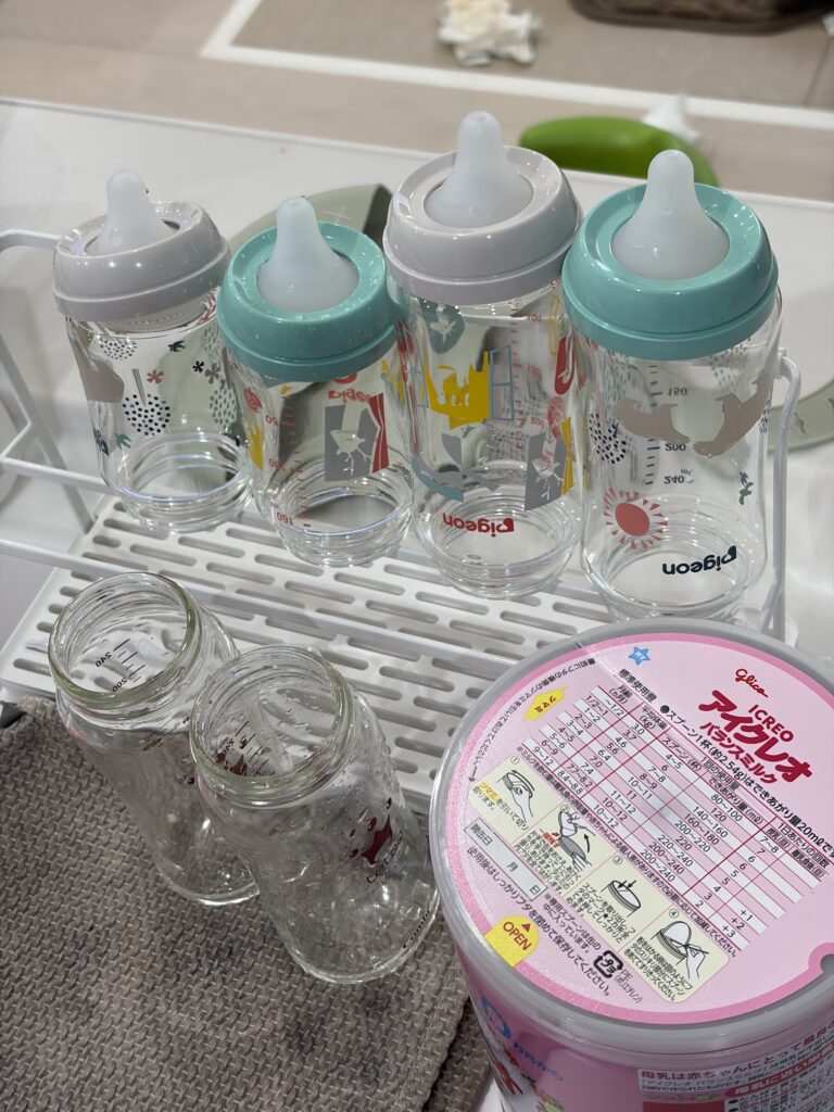 - 哺乳瓶は多め、夜は交代制で睡眠確保